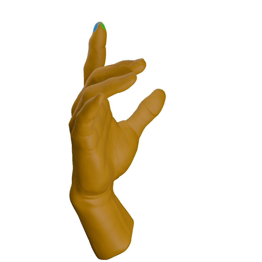 Handposition: open hand, extended fingers, I slightly curled