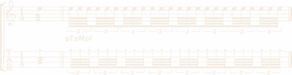 TMI picking tremolo on 1st string. P and R stabilize hand and are placed on ukulele top. Picking engagement precise on Ta, Mc, Ic. Single String Tremolo